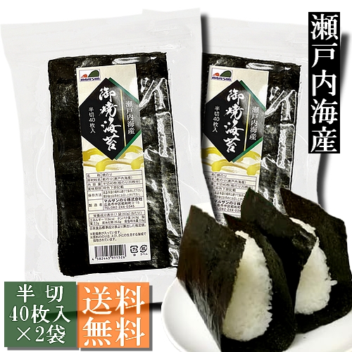 【送料無料】瀬戸内海産 焼き海苔 おむすび・手巻き用 半切80枚(半切40枚入×2袋)【メール便】
