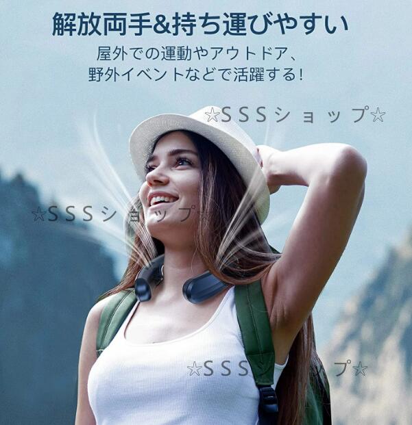 【人間工学設計とプレミアム素材による極上のフィット感】首かけ扇風機は人間工学に基づいて設計され、軽量の設計を採用し、首の曲線に合わせて自由に調整できます。長時間使用していても、首に負担をかけず、いつでもどこでも涼しい風をお楽しみいただけます。運動前のウォーミングアップや運動中にも最適なパートナーです。
