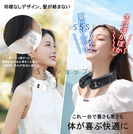 ネッククーラー 首掛け扇風機 3つ冷却プレート 半導体冷却 強力 四風道送風 ネックヒーター LED付き 急速充電 羽なし 携帯扇風機 熱中症対策