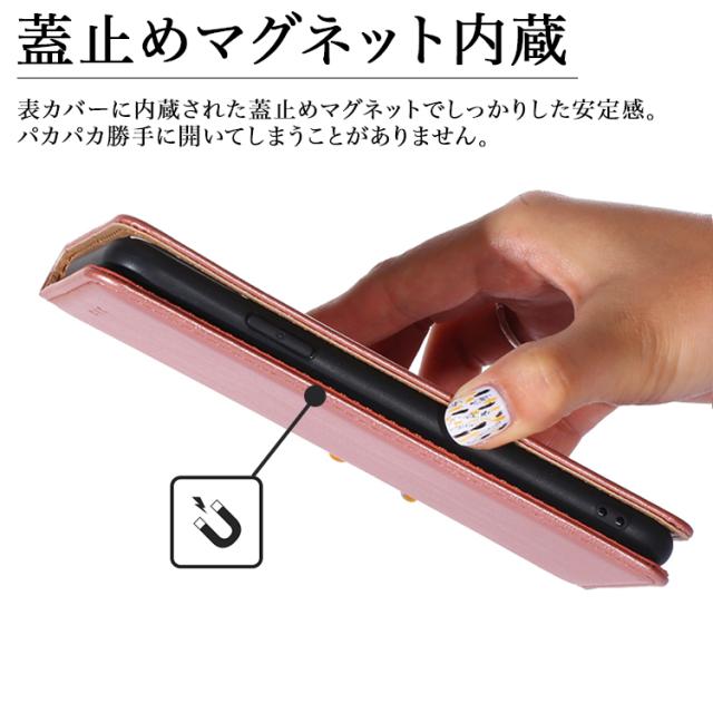 ■蓋がピタッと止まる 表カバーにマグネット内蔵されているので、蓋が勝手にパカパカすることなくしっかりと閉じてくれます。ベルトがないので操作もスムーズ。 ■上質PUレザーを使用 手触り滑らかな上質PUレザーを表カバーと裏地にも使用しています。 高級感ある質感と柔らかさもあり使いやすいのが特徴です。 ■TPU素材のソフトケースで耐衝撃性 インナーケースにはTPU素材を使用。柔軟性があり着脱が楽々。衝撃にも強い素材の為、万が一落としてしまってもスマホ本体を守ります。 ■全面保護設計 手帳型ならではの全面保護設計でスマホ本体への埃や傷を防止。ディスプレイだけではなく背面もガード。 表の上質PUレザーとインナーケースのソフトTPU素材で耐衝撃にも強く、放熱性に高いのもポイントです。 ■スタンド機能 動画視聴にも便利なスタンド機能がついておりますのでお好みの角度で楽しむことができます。 ■ケースを閉じたままでも通話可能 ■ストラップホール付き |