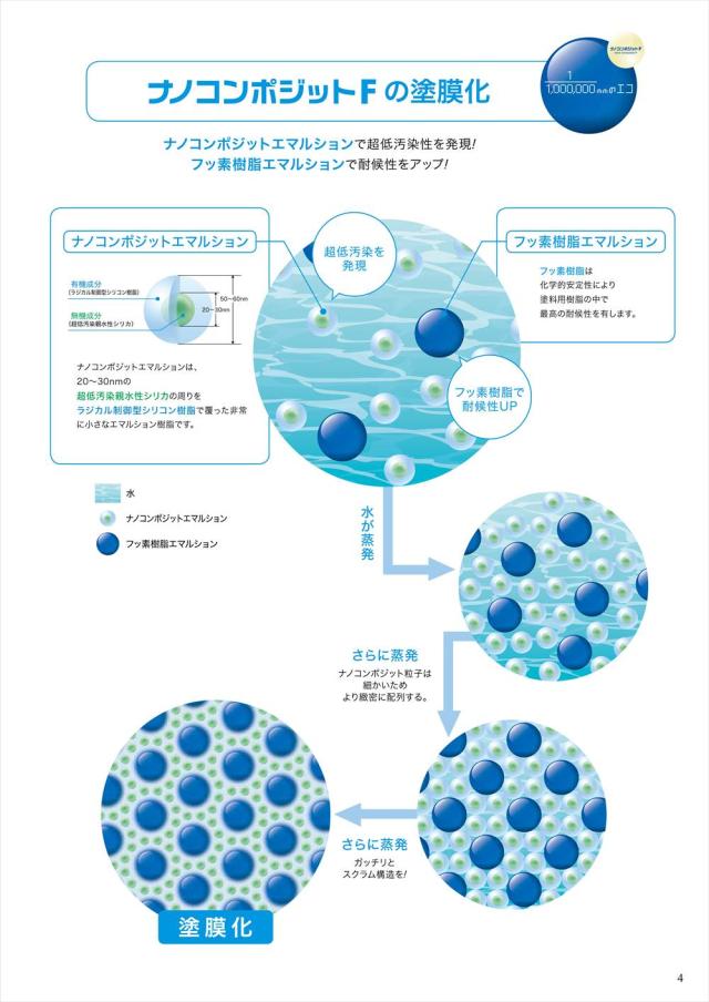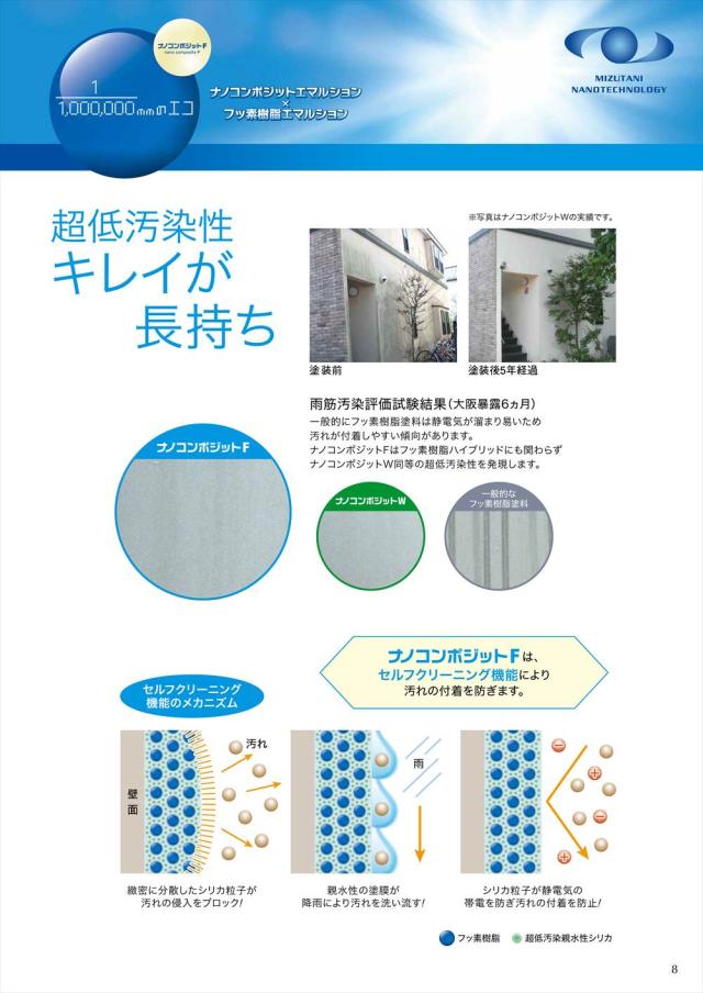 ●超低汚染性 フッ素樹脂ハイブリッドにも関わらずナノコンポジットW同等の超低汚染性を発現します。