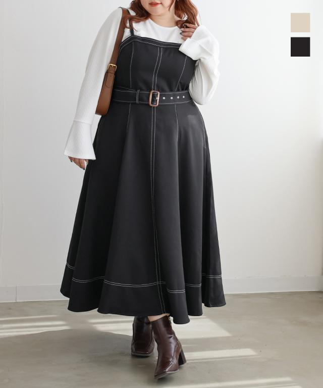 大きいサイズ/レディース/LL/3L/4L/CLETTEオリジナル★配色ステッチフレアワンピース