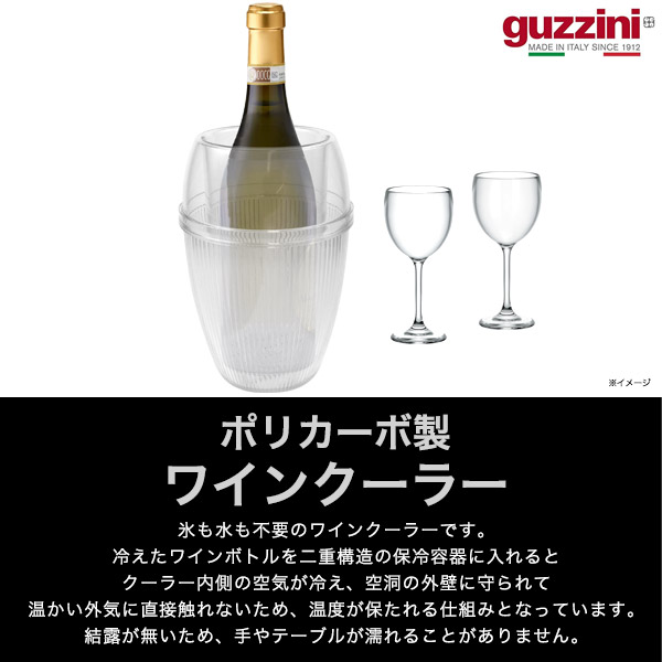 ワインクーラー ポリカーボ製 guzzini メーカー箱なし 訳あり品 アウトレット 1本用 氷・水不要 ボトルクーラー 結露対策 ワイングッズ ワイン用品 家飲み パーティー ワインボトル 透明 クリア 宅飲み お洒落 容器 グッチーニ 卓上用品 テーブルウェア ホームパーティー