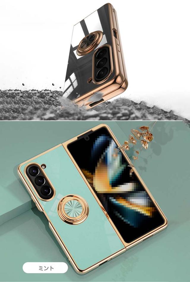 Galaxy Z Fold5 ケース カバー メッキ 一体型リング付き マグネット式車載ホルダー対応 背面ケース Samsung サムスン ギャラクシー Z フォールド5 ソフトケース/カバー アンドロイド おすすめ おしゃれ スマートフォン/スマホケース/カバー ストラップホール付き