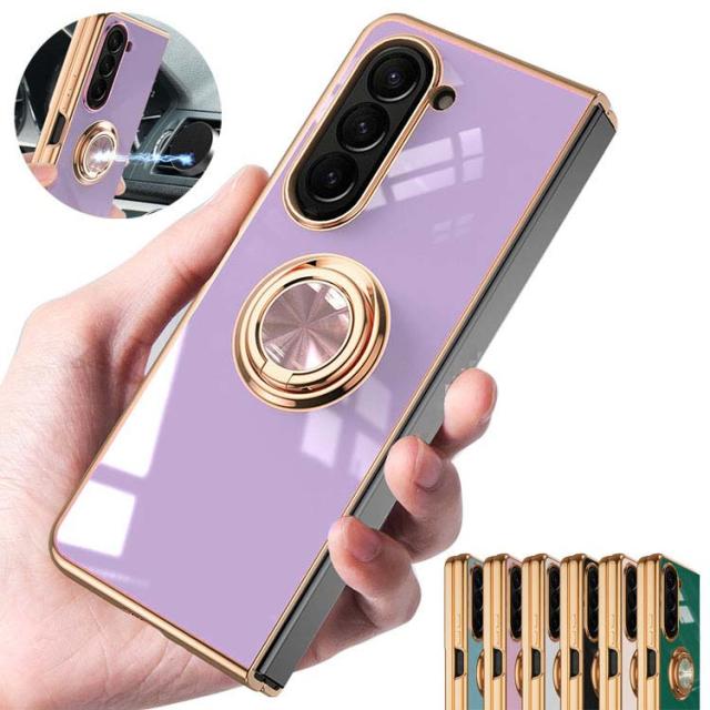 Galaxy Z Fold 5 ケース カバー メッキ 一体型リング付き マグネット式車載ホルダー対応 背面ケース ギャラクシー Z フォールド5 ソフトケース/カバー アンドロイド おすすめ おしゃれ スマートフォン/スマホケース/カバー ストラップ穴