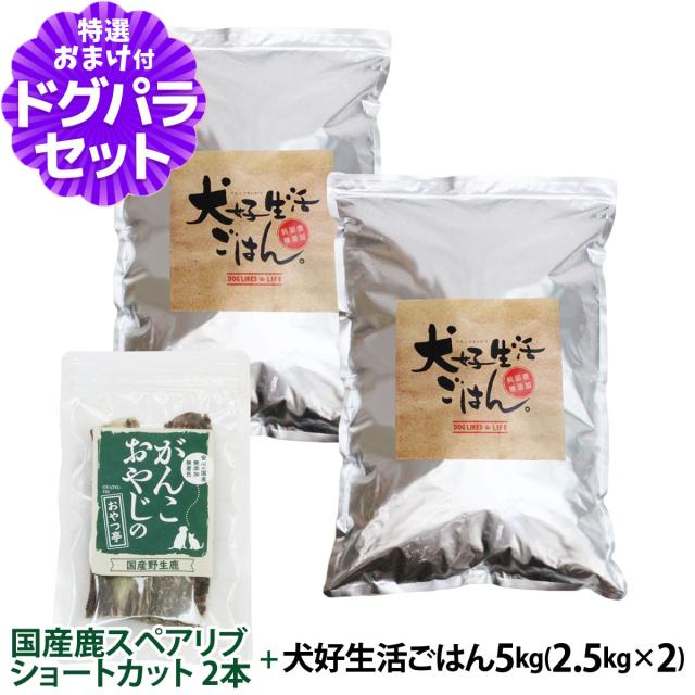 【沖縄以外送料無料】 ドッグフード 無添加 国産 犬好生活ごはん。オールステージ 5kg+国産鹿のスペアリブ ショートカット 2本入り