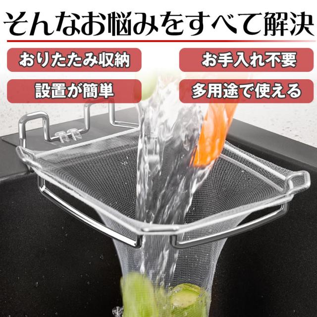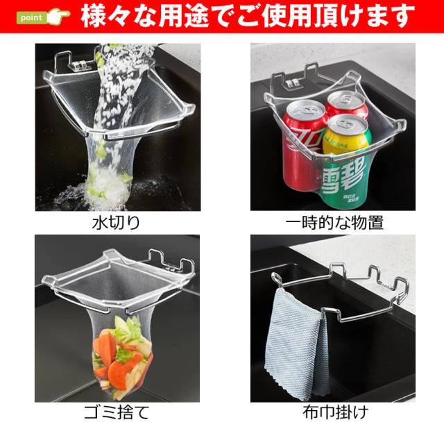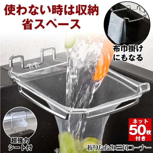 三角コーナー 折りたたみ ネット ふきん掛け ふきん ハンガー 生ごみ ゴミ箱 シンク キッチン 水切り ラック ゴミ受け ふきんスタンド さんかく コーナー 代わり ダストボックス ステンレス 台所 水回り 掃除 料理 残飯