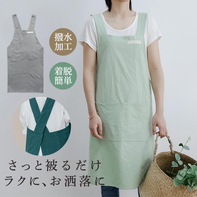 エプロン おしゃれ 撥水加工 ワンピース ロング H型 ポケット付き 前掛け かぶるだけ 業務用 家庭 花屋 保育士 無地 DIY