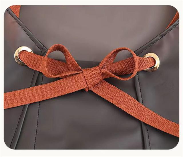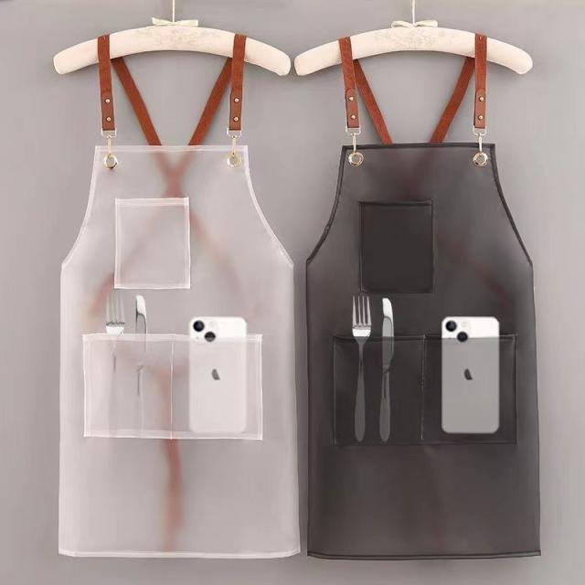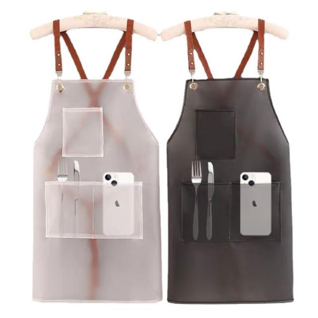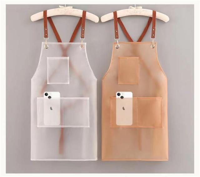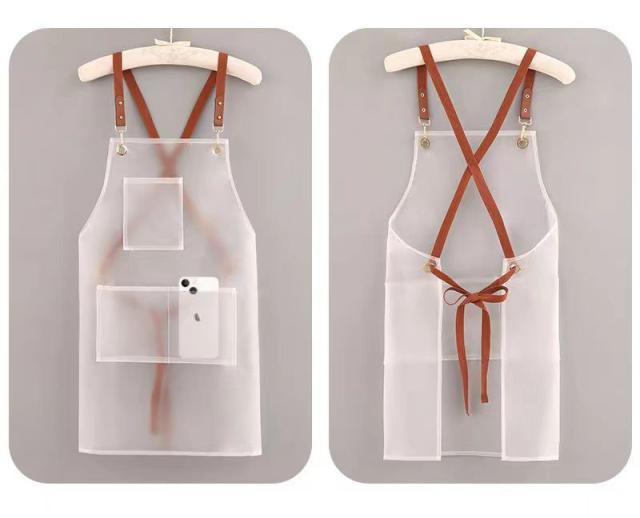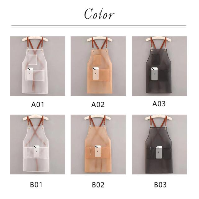 耐水性・耐油性のPVC素材のエプロン。食品の汚れや油分から守り、お手入れも簡単です。軽量、撥水効果も高く、どこでも使えるシンプルなデザインのエプロンです。