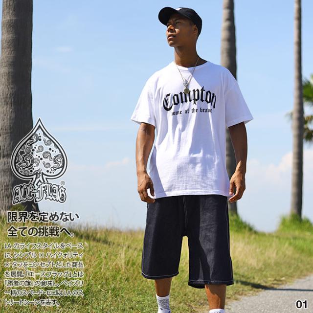 【45%OFF】ACE FLAG 上下セット 半袖 ブランド セットアップ Tシャツ ハーフパンツ メンズ 春夏用 白/黒 大きいサイズ エースフラッグ Compton コンプトン b系 ヒップホップ ファッション ストリート系 ハイ AF-SE-TS-090