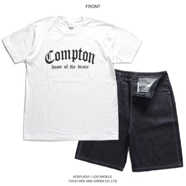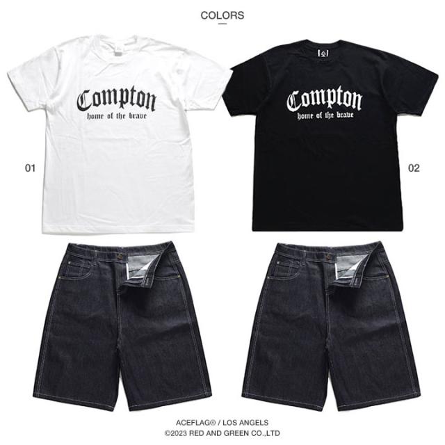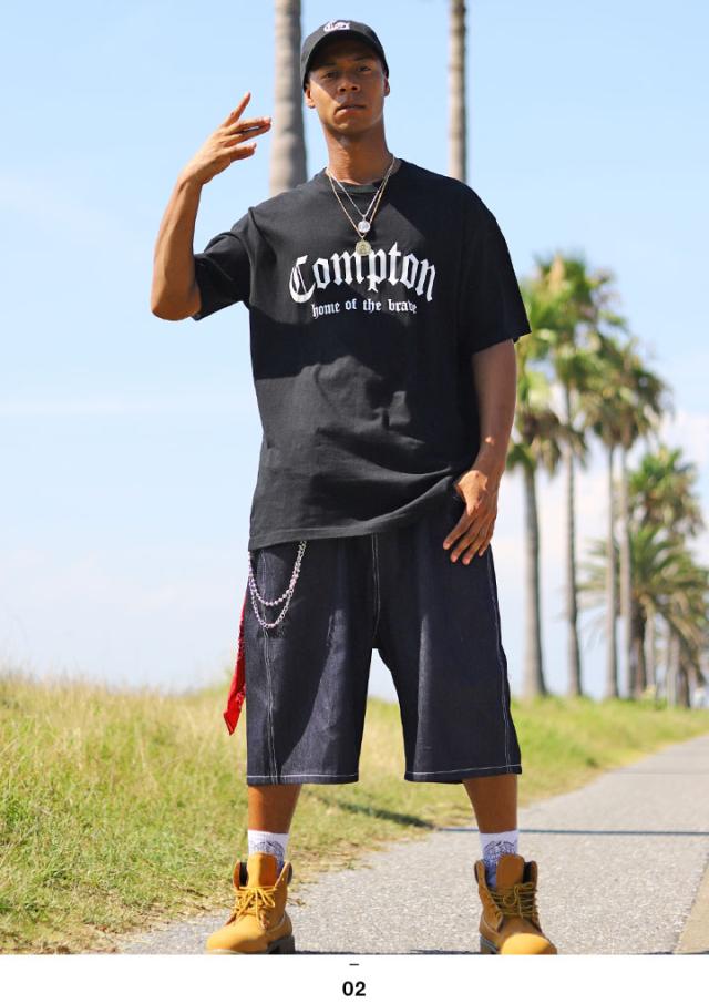 N.W.A.を輩出し、Straight Outta Comptonの舞台としても知られている「Compton」をドロップしたTシャツとデニムハーフパンツの上下セット。