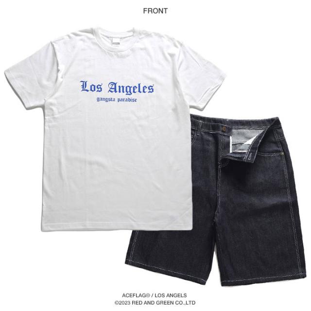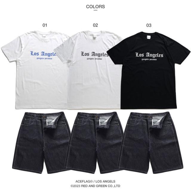 ACE FLAG 上下セット 半袖 Tシャツ デニム ハーフパンツ 上下 全3種 大きいサイズ エースフラッグ セットアップ LA ビッグシルエット Los Angeles b系 ヒップホップ ファッション ハイ 夏 新作 AF-SE-TS-095