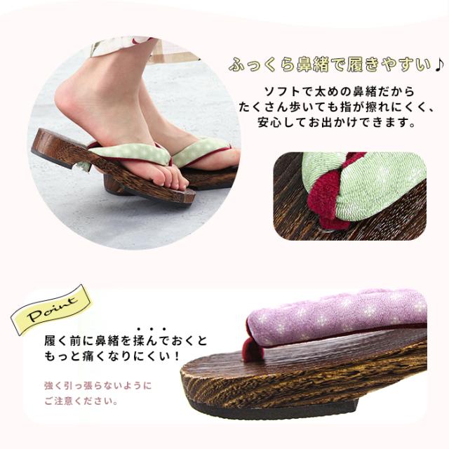 商品説明 [サイズ] 18.0cm / 19.5cm / 21.0cm 表記サイズは台の実寸になります。 ※下駄や草履は履いた時に5mm〜1cmくらい出るのが普通です。 サイズは靴やサンダルと違って多少融通が利きます。(個人差があります) [素材] 本体:桐 / 鼻緒:(表) 綿、(裏) ポリエステル [生産] 中国 [配送] 宅配便 大人と同じ素材、仕様で作くった下駄です。 今年の夏は草履ではなく本格的な桐下駄でおねえさんな着こなしはいかが? 人気のくすみ系でグッとオシャレ度が上がります。 花火大会や夏祭りにの浴衣姿にぜひどうぞ! |