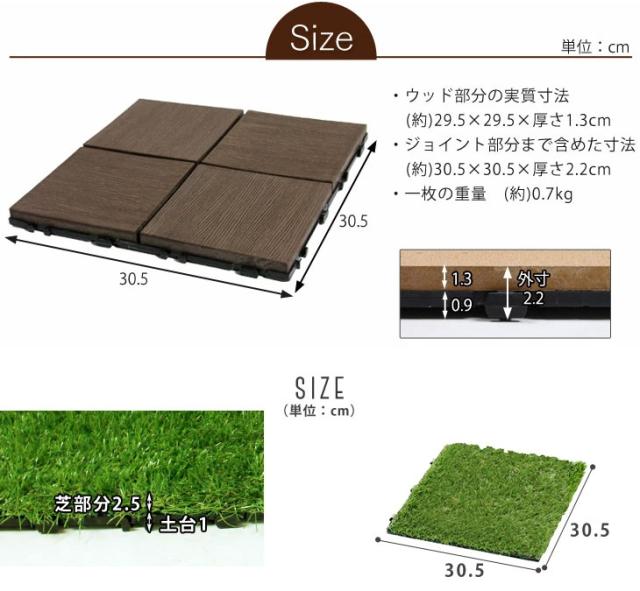 【正午〜P5%還元】 人工芝 & ウッドタイル ジョイント式 高耐久 人工芝 ウッドパネル 162枚セット ウッドタイル 14.5平米用 芝丈25mm 30×30cm ジョイント リアル人工芝 人工芝生 人工木 ジョイントタイル パネル タイル ガーデン 162枚 正方形 diy 庭