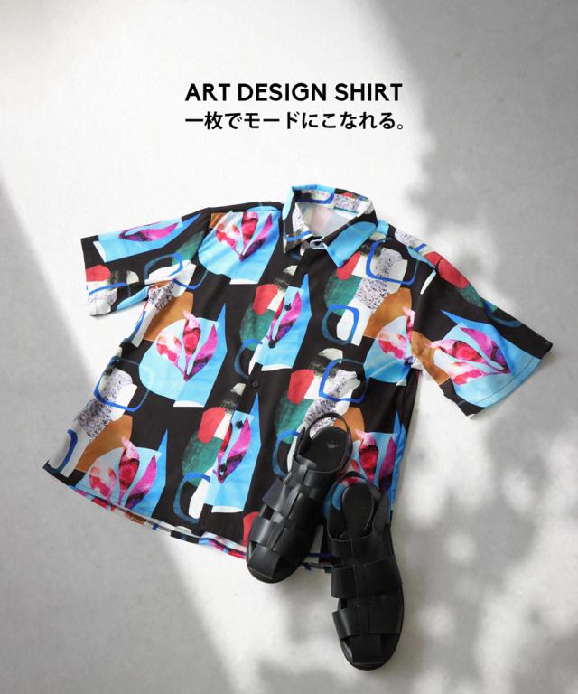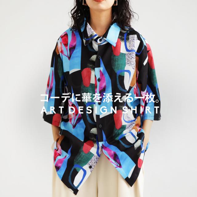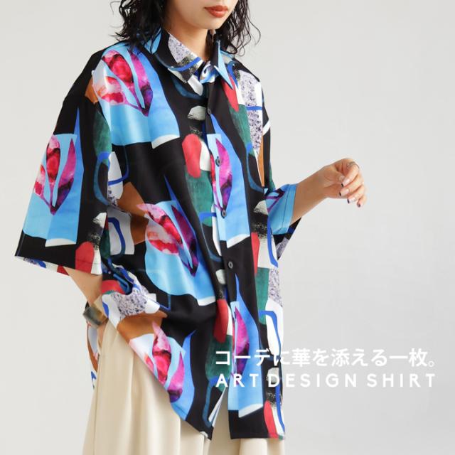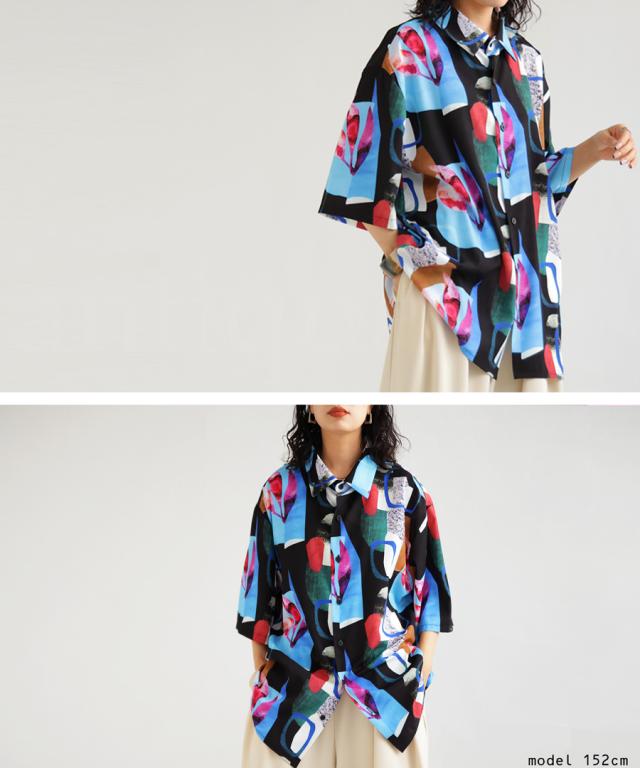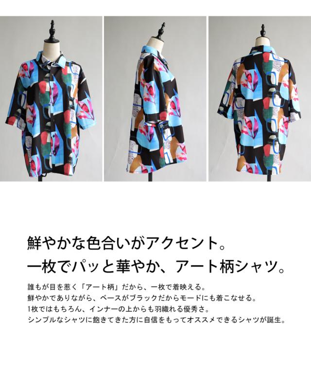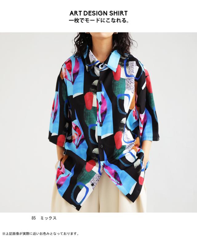 【予約:5月上旬納期】シャツ レディース トップス 半袖 アート柄 柄 送料無料・再入荷 (50)メール便可
