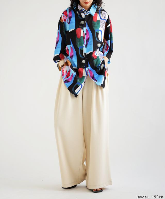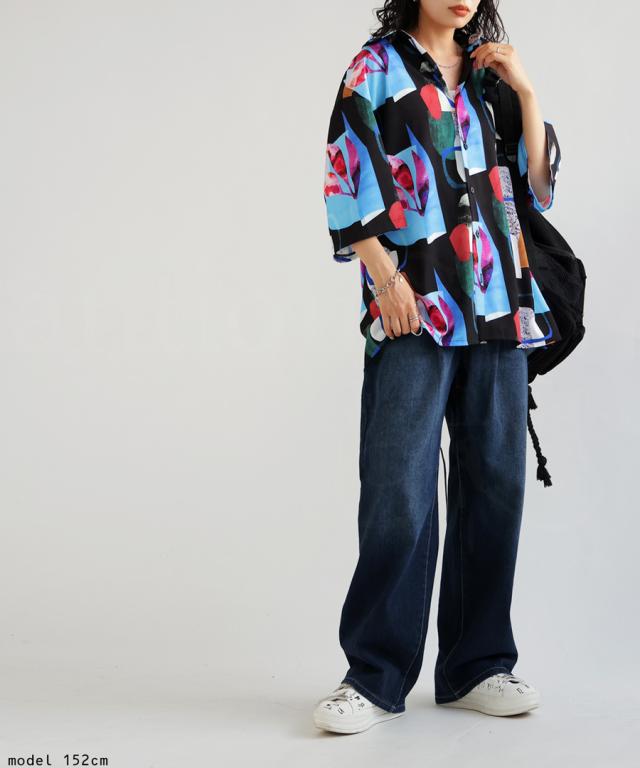 ze-01040 柄シャツ レギュラーカラー ニュアンス柄 鮮やか 前開き 羽織り ゆったり 抽象柄 カラフル 鮮やか カジュアルシャツ デザインシャツ 大きめ 大きいサイズ ユニセックス