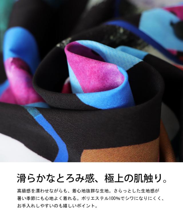 鮮やかな抽象柄でお洒落度が上がる。