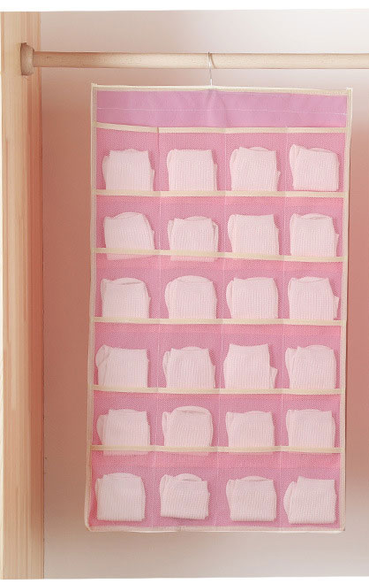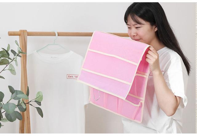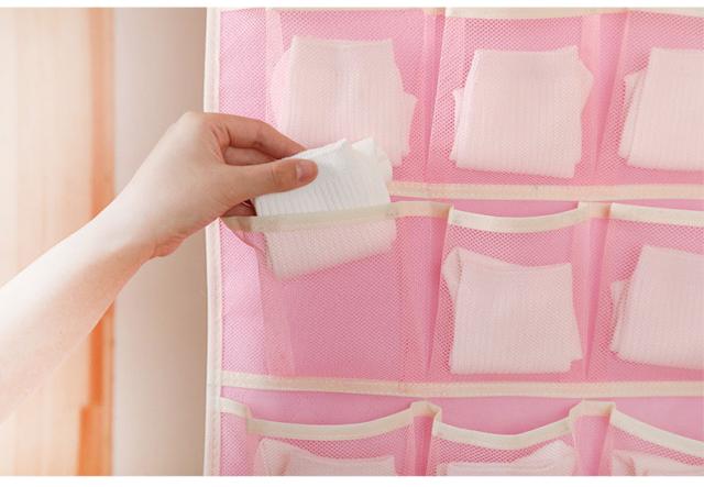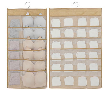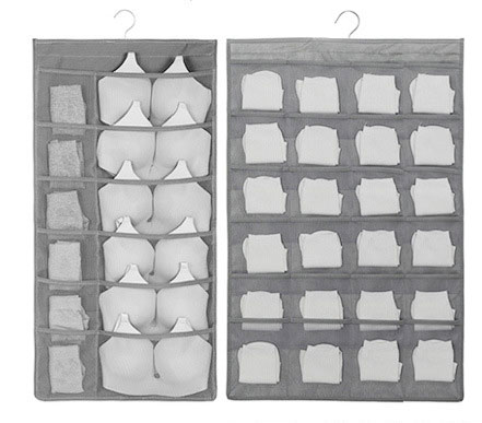 ハンガーウォールポケット 下着収納 吊り下げ収納 両面タイプ 仕切り 壁掛け ポケット 大容量 おしゃれ ブラの型崩れ防止 表12ポケット+裏24ポケット 肌着 靴下 スッキリ収納 便利収納