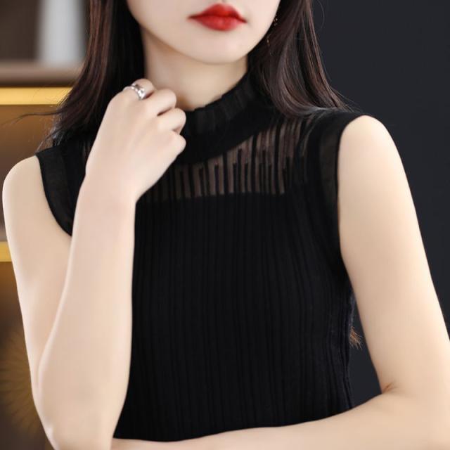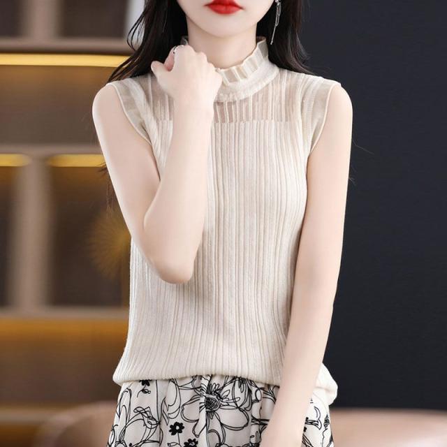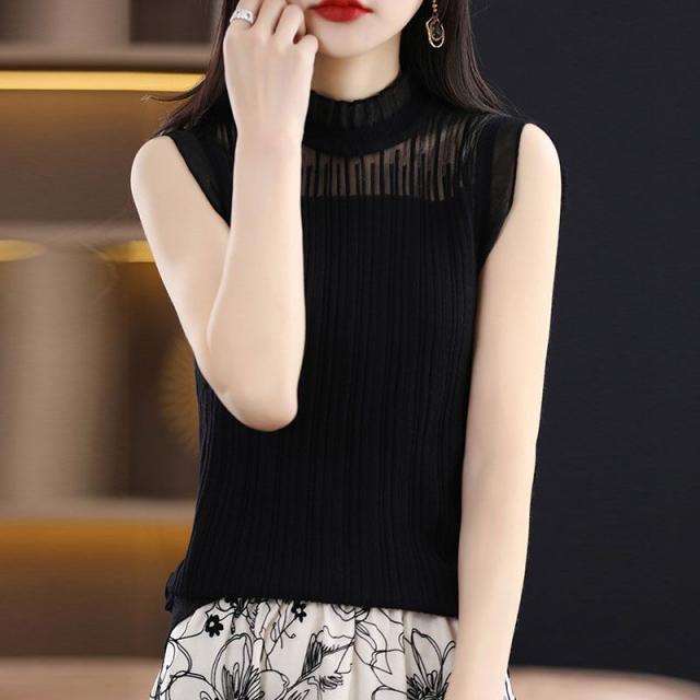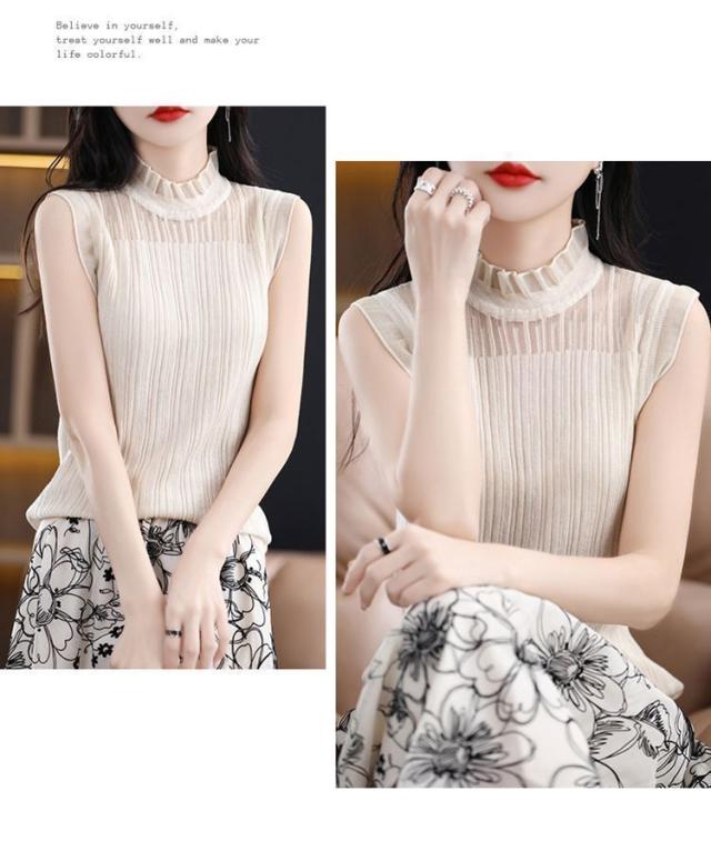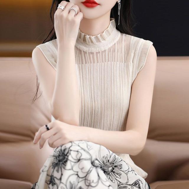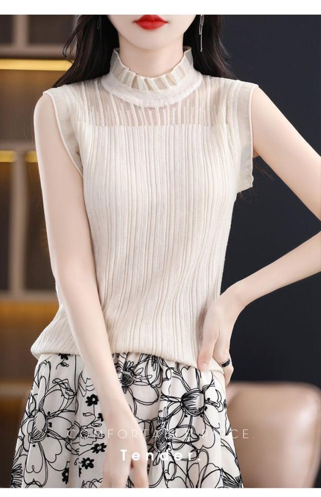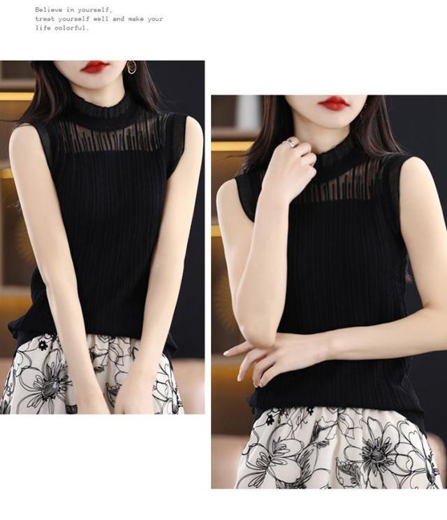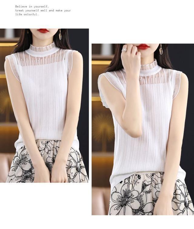 タンクトップ ノースリーブ ブラウス レディース 春 夏 フリル プルオーバー サマーニット カジュアル 無地 トップス シースルー OL 通勤 デート お出かけ 高見え