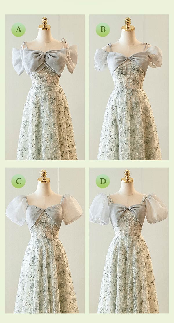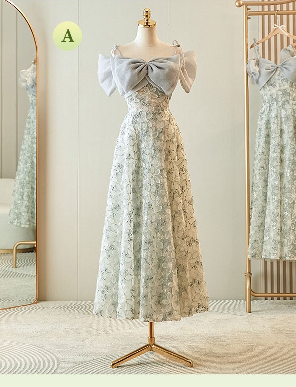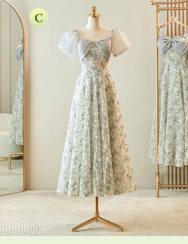 ブライズメイド ドレス ミモレ丈ドレス 総レース 花柄刺繍 ライトグリーン 演奏会 ピアノ発表会 キャミソール バフスリーブ ポワン袖 Aライン ワンピース レディース 編み上げ 袖付き 花嫁付き添い サマー 春夏 きれいめ 小さいサイズ 20代 30代 40代 結婚式 母親 ドレス da197x1x1zr