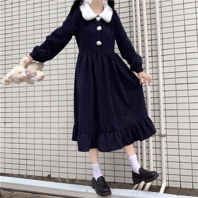 ワンピース 秋冬ワンピース ロングワンピース レディース 長袖 Aライン 可愛い 姫様 厚手 日系女子中高生 通学 高校生 きれいめ 春 秋 冬