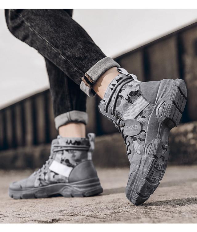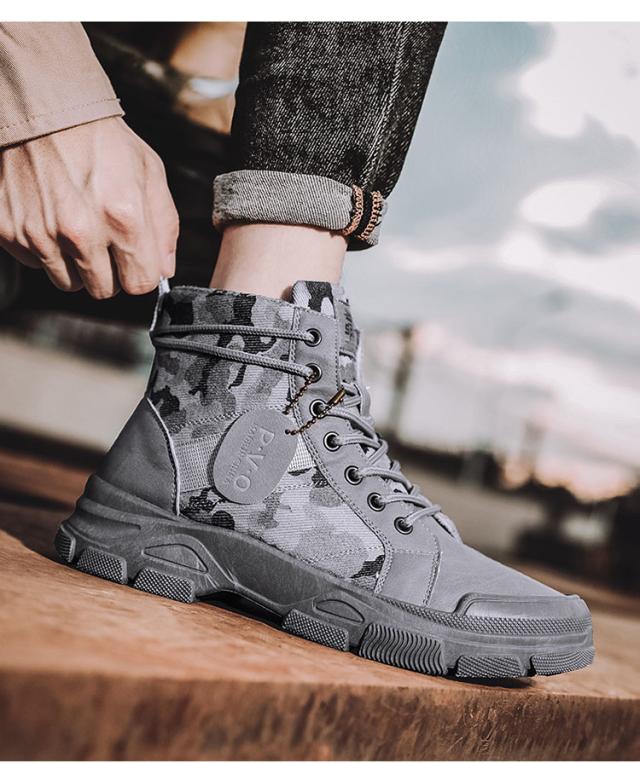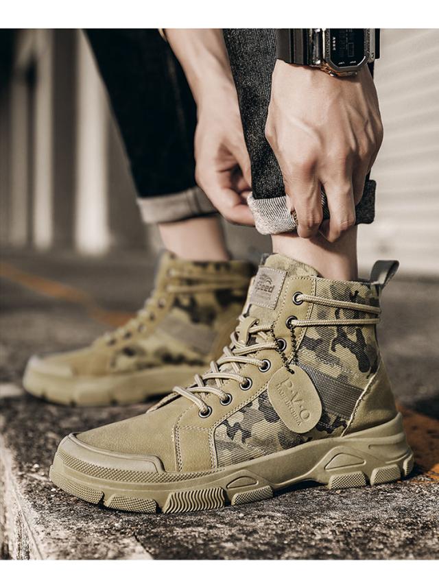 ブーツ メンズ ショートブーツ ワークブーツ 編み上げ 迷彩 カジュアル シューズ 靴 ハイカット レースアップ 紳士靴 低ヒール 滑り止め 耐久性 幅広 おしゃれ かっこいい 男性 女性 レディース 紳士 軽量