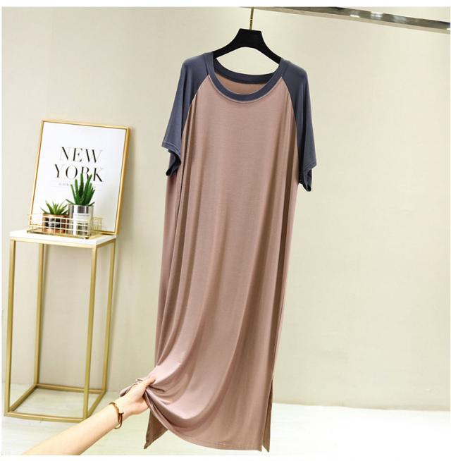 ネグリジェ パジャマ パッチワーク Tシャツワンピース カットソー 半袖 ロング ワンピース ルームウエア ゆったり レディース 夏