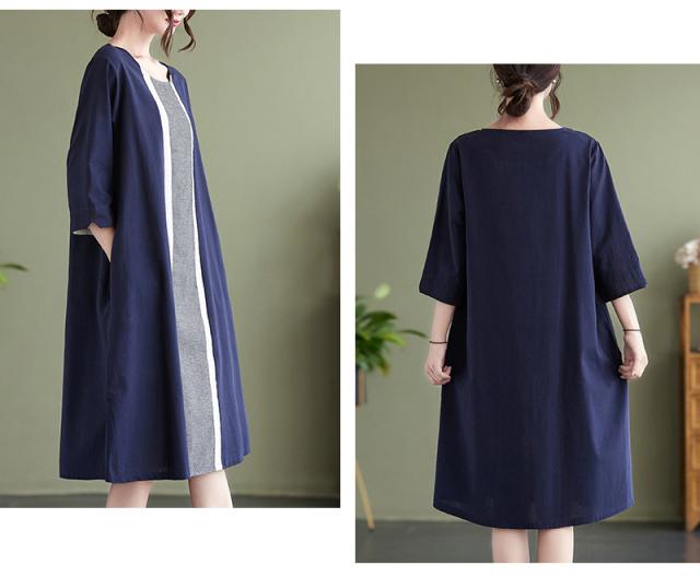 レディース ワンピース 春夏ワンピース 綿麻 長袖ワンピース ロングワンピース 大人ワンピース きれいめワンピース Aラインワンピース 体型カバー