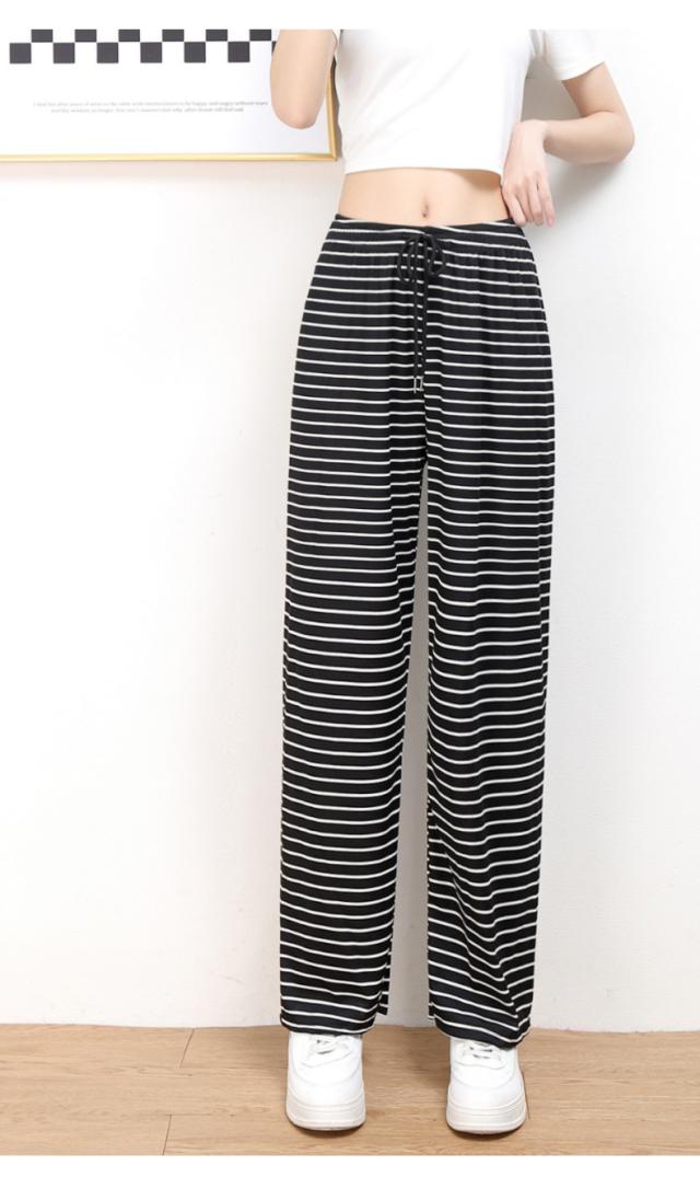 ワイドパンツ レディース 冷感 パンツ ストレッチ ボーダー ワイドレッグパンツ 通気性 夏 涼しい ロングパンツ カジュアル おしゃれ 秋