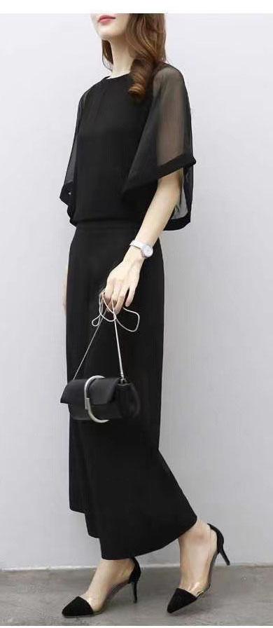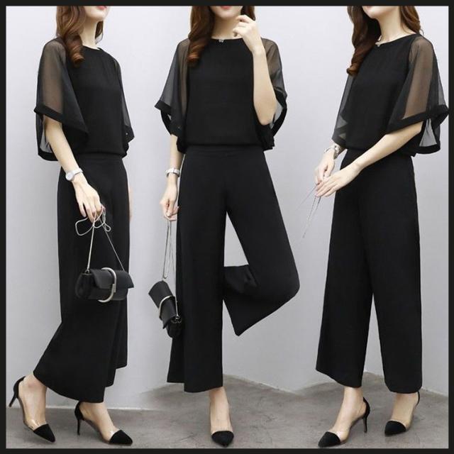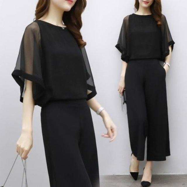 セットアップ ワイドパンツ レディース 2点セット トップス シフォンブラウス フリル 体型カバー フォーマル 二次会 30代 40代 入学式 入園式