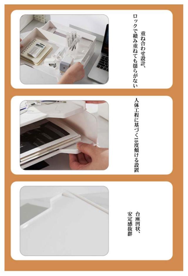 | 【多用途】小型で、持ち運びやすいので、学校、病院、オフィス、ファイル室、図書館、家庭などの場所に置いても馴染みやすいです 【滑り止め設計・積み重ね可能】トレーの両側に溝付きバックルデザイン、しっかりと積み重ねます。非常に堅固で倒れません。底面に凸凹のデザインがあり、入れ物の滑りを予防します 【スペースを節約】横長口のタイプになっているので取り出しも収納も楽々です。A4用紙が入れられる収納トレー、書類だけでなく、A4の雑志、文具、小物などの収納にも対応したサイズ | |