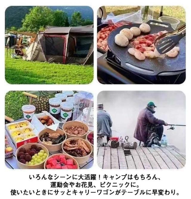 テーブル キャリーワゴン アウトドアワゴンテーブル 折りたたみ テーブル 用 天板 テーブル アウトドアワゴン アウトドアキャリー 頑丈 軽量 運動会 90×55cm 簡単取り付け アウトドア キャンプ お花見 ピクニック レジャー キャリーカート