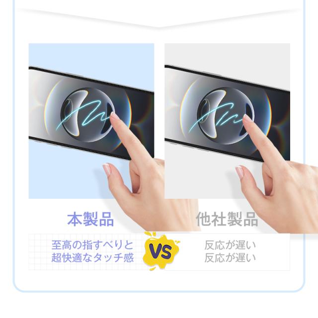 【安心の飛散防止+滑らかな操作性】万が一、激しい衝撃により割れてしまった場合でも、ガラス片が飛び散らないので安心です。また、指への抵抗を抑えたツルツルとした素材で、滑らかな操作が可能。タッチ時の感度を損なわないので、ゲームやタイピングなどの連続した細かな操作も快適に行なえます。
