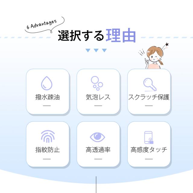 1.表面に防汚コーティングを施し、指紋や汚れを付きにくくなり、常に画面をキレイに保ちます。