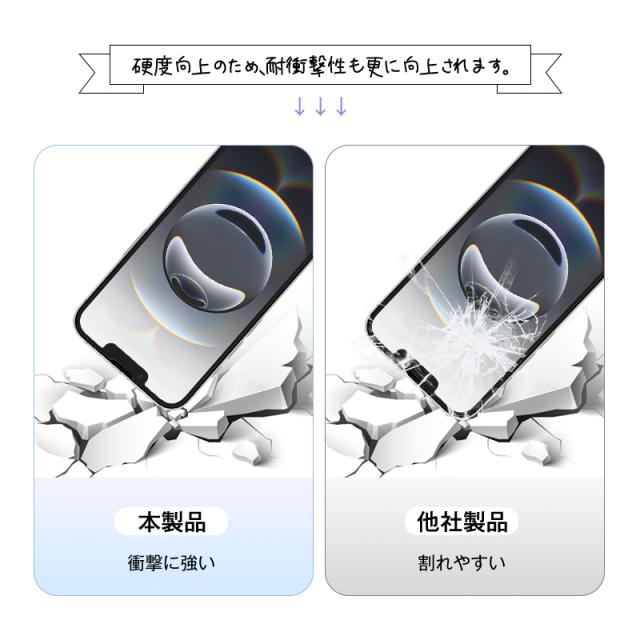 【9D曲面加工+9H硬度】ガラス縁を9Dの曲面加工(ラウンドエッジ加工)することにより、滑らかな手触りを実現し、横からの衝撃も受け難くくなります。更に、ハードコート加工でガラスフィルムの耐衝撃性と耐摩擦性が更に向上されます。9H硬度で傷つけなく、iPhoneの液晶画面に万全な保護を提供します。