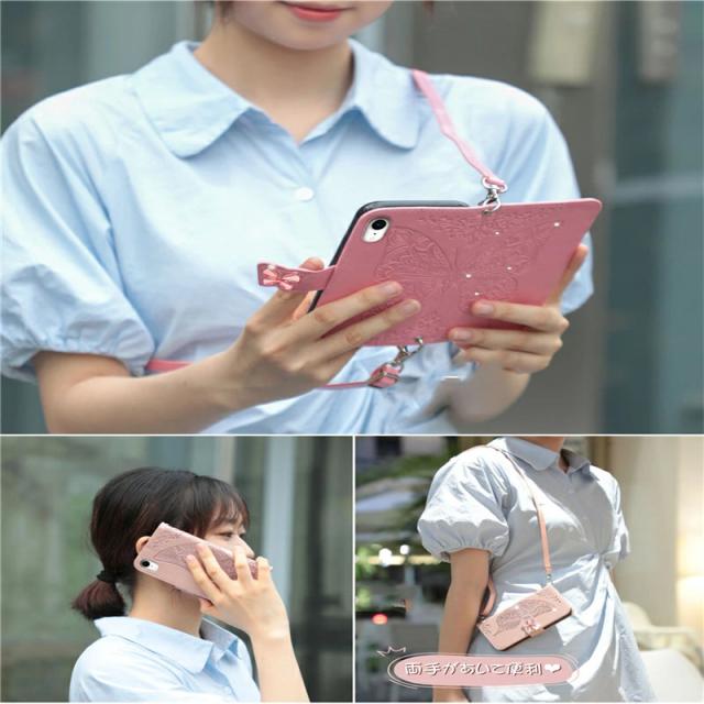 iPhone17 16 15 15plus 14pro 16promax ケース 傷防止 軽量 スマホケース ショルダー タイプ 手帳型 蝶々 花柄 全機種対応 iPhone16E 15 14 13 12 11 XR XS se3 se2 7 8 携帯カバー 大人女子 かわいい おしゃれ 耐衝撃 キラキラ 蝶柄 スマホショルダー 薄型