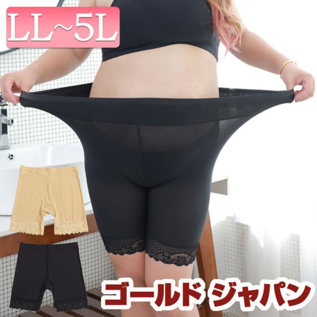 春新作 大きいサイズ レディース インナー スパッツ レギンス パンツ 裾レース股ずれ防止3分丈パンツ インナーパンツ 股擦れ 股ズレ 股ずれ ストレッチ ウエストゴム 3分丈 レース 裾レース 春服 夏服 秋服 F フリー LL 2L 3L 4L 5L ブラック 黒 ベージュ ゴールドジャパン