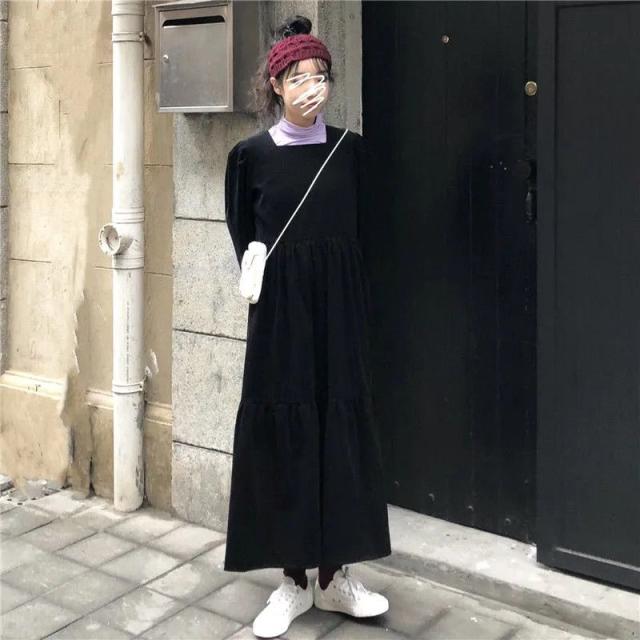 ワンピース ロングワンピース 長袖 レディース 春秋ワンピース 角襟 大きいサイズ 通勤 通学 可愛い 春 秋 中高生 高校生 韓国 きれいめ