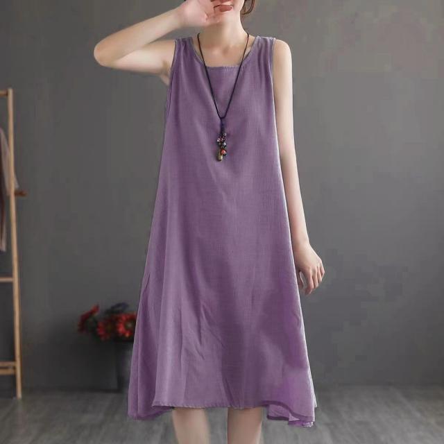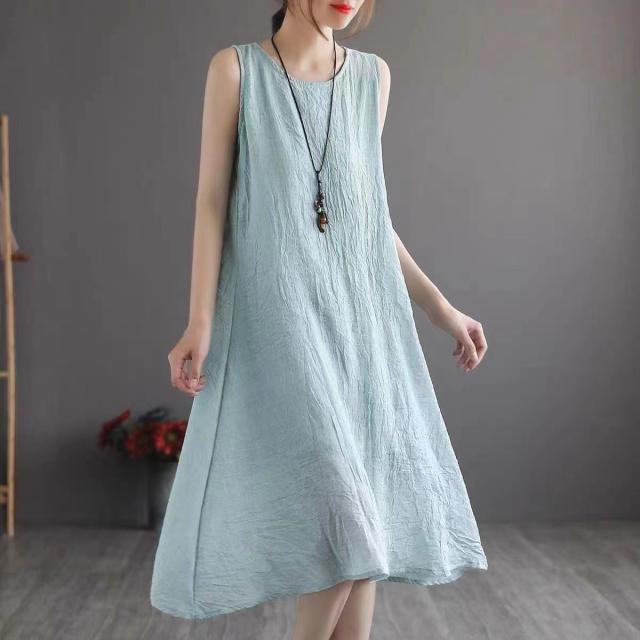 ワンピース レディース ノースリーブ ロング ワンピース 綿麻 マキシワンピース 夏 リネン風 無地 体型カバー ゆったり タンクワンピース 大きいサイズ カジュアル 30代 40代 50代