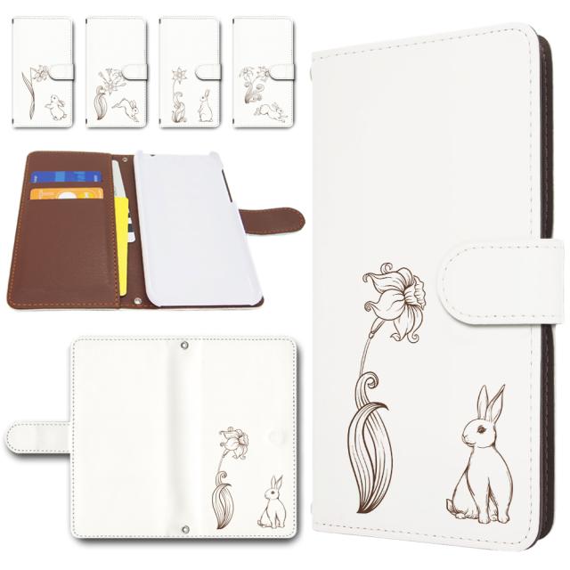 Xperia XZ Premium SO-04J ケース 手帳型 カメラ穴あり うさぎ 白地 兎 ウサギ 花柄 シンプル ホワイト おしゃれ エクスペリア xzプレミアムケース so04j カバー スマホケース 携帯ケース 手帳 カバー