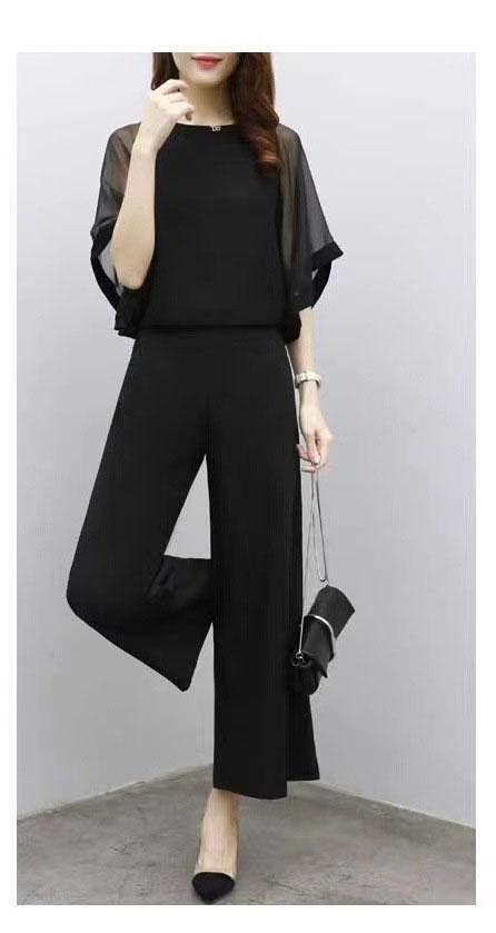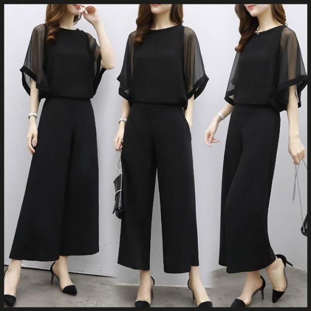 セットアップ ワイドパンツ レディース 2点セット トップス シフォンブラウス フリル 体型カバー フォーマル 二次会 30代 40代 入学式 入園式