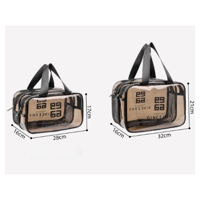 【2サイズ2個セット】ビニールクリアポーチ クリア ポーチ バッグ 送料無料 化粧ポーチ 取っ手付き PVC 透明 コスメポーチ 化粧品収納 ダブル メイクポーチ 大容量 小物入れ 防水 プール 旅行 出張 便利