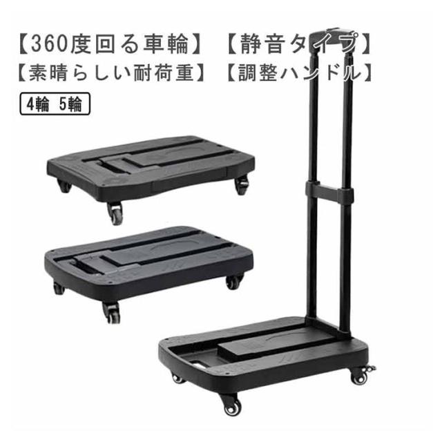 台車 折りたたみ 軽量 コンパクト 静音 キャスター付き 360度回転 室内 スチール 耐荷重100kg 5輪 4輪 キャリーカート 買い物 持ち運び ハンドキャリー ハンドル調整 荷台伸縮 手押し台車 荷物 運搬 移動 平台車 オフィス 家庭用 業務用 引っ越し