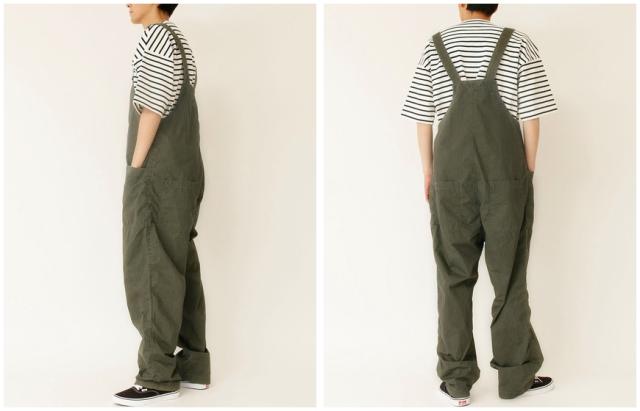 シンプルなデザインと軽く爽やかな生地が魅力のオーバーオール。