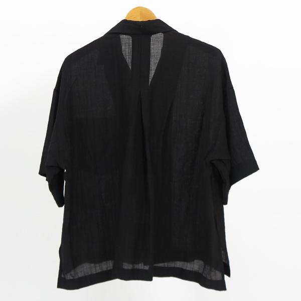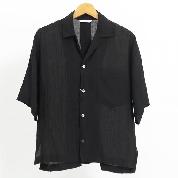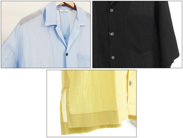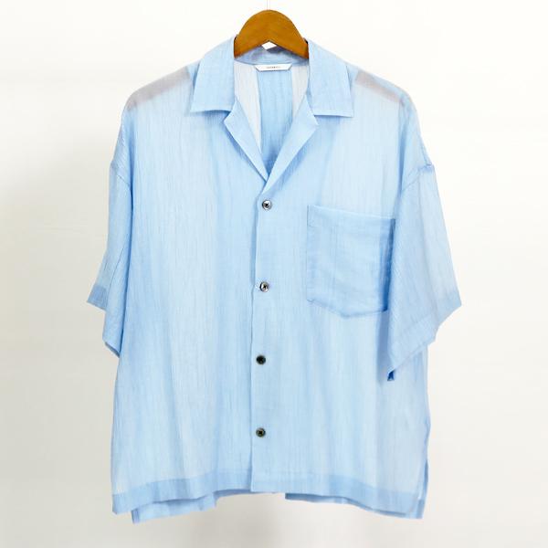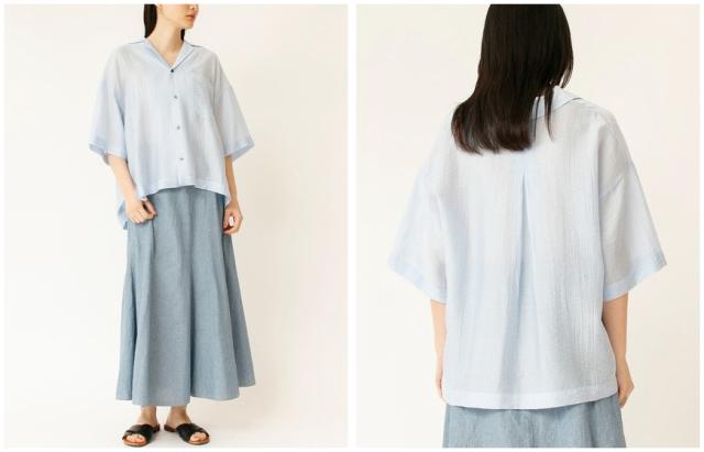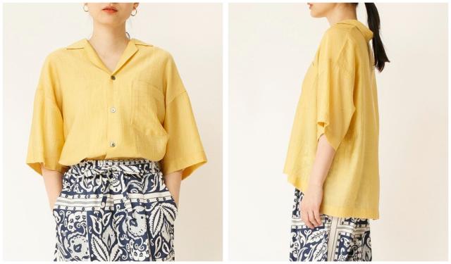 シアーな素材感が女性らしい雰囲気のオープンカラーシャツ。