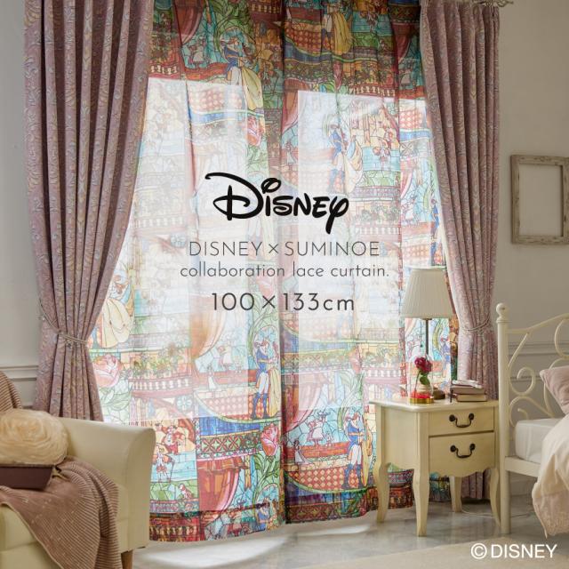 美女と野獣 ディズニー カーテン レース 100×133cm レースカーテン 北欧 インテリア プリンセス テイルオブラブボイル 1枚 日本製 洗える おしゃれ スミノエ SUMINOE メーカー直送