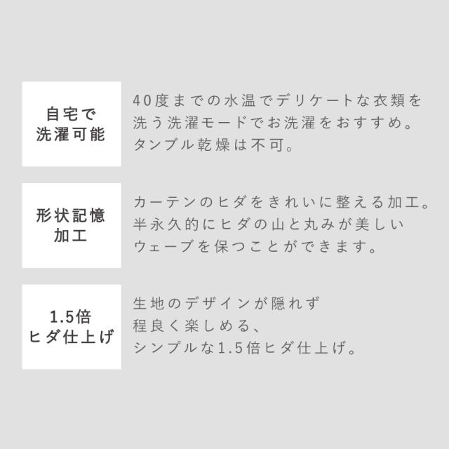 形状記憶加工で、カーテンのヒダをきれいに整えます。半永久的にヒダの山と丸みが美しいウェーブを保つことができます。