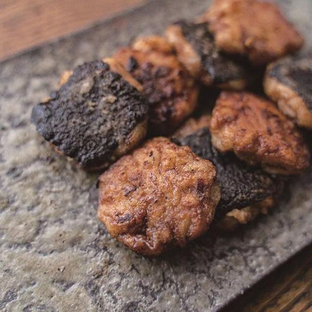 里芋練ったのを味海苔ではさんで焼いただけ