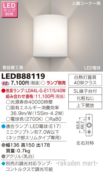 東芝ライテック LEDB88119 LEDブラケット(ランプ別売)