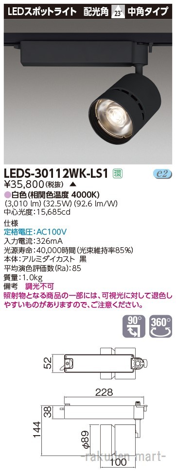 東芝ライテック LEDS-30112WK-LS1 スポットライト3000黒塗
